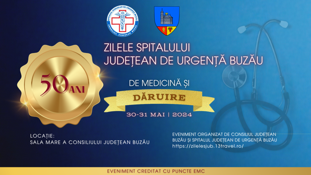 Cu deosebită considerație si mândrie, vă adresăm invitația de a celebra împreună cu noi un moment important din viața comunității noastre medicale și a întregului județ Buzău și anume aniversarea a 50 de ani de activitate. “Zilele Spitalului Județean de Urgență Buzău – 50 de ani de Medicină și Dăruire” este un eveniment aniversar, ce va avea loc în format fizic în perioada 30-31 Mai 2024.