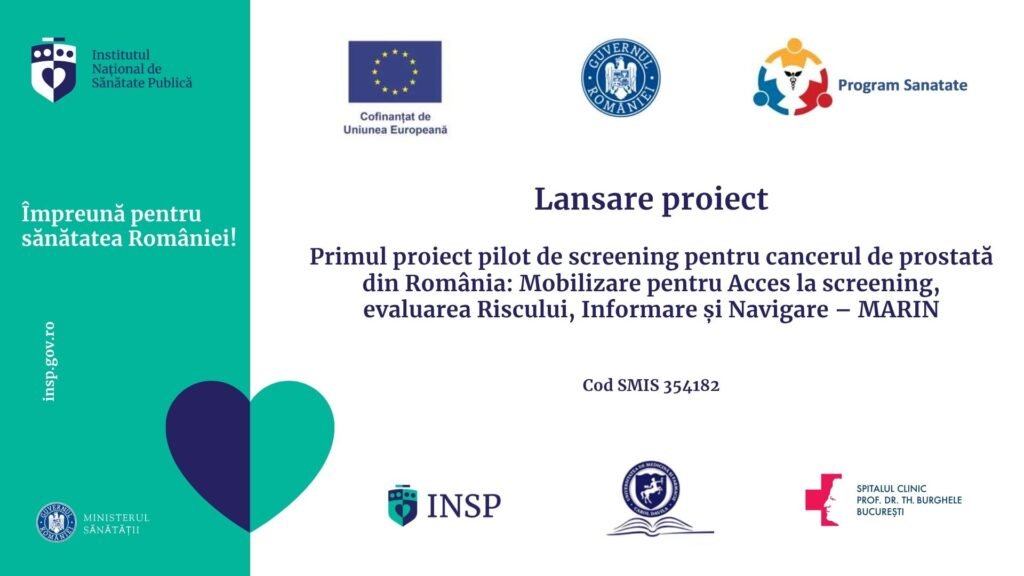 Institul Național de Sănătate Publică are onoarea de a anunța începerea “Primului proiect pilot de screening pentru cancerul de prostată din România: Mobilizare pentru Acces la screening, evaluarea Riscului, Informare și Navigare (MARIN), cod MySmis 354182, în parteneriat cu: