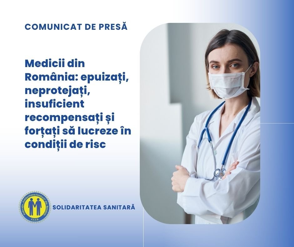 Federația „Solidaritatea Sanitară” din România atrage atenția asupra concluziilor îngrijorătoare ale unui studiu recent privind condițiile de muncă ale medicilor din sistemul public de sănătate. Cercetarea aferentă studiului Impactul sistemului malpraxis și al gărzilor asupra profesioniștilor din sănătate. Probleme și soluții a fost desfășurată în luna martie a acestui an, având ca subiecți medicii din sectorul public de sănătate.