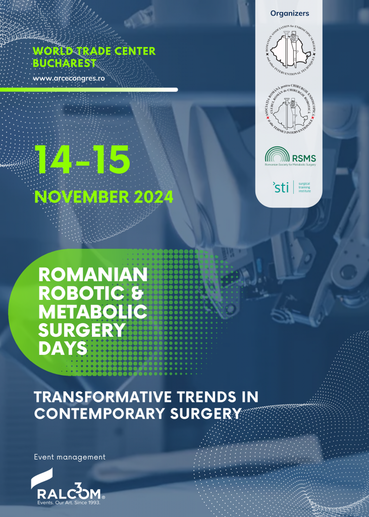 The Romanian Robotic & Metabolic Surgery Days 2024 will include two main events: The Robotic Surgery Symposium (held on 14 November) and The Metabolic Surgery Symposium (held on 15 November).
